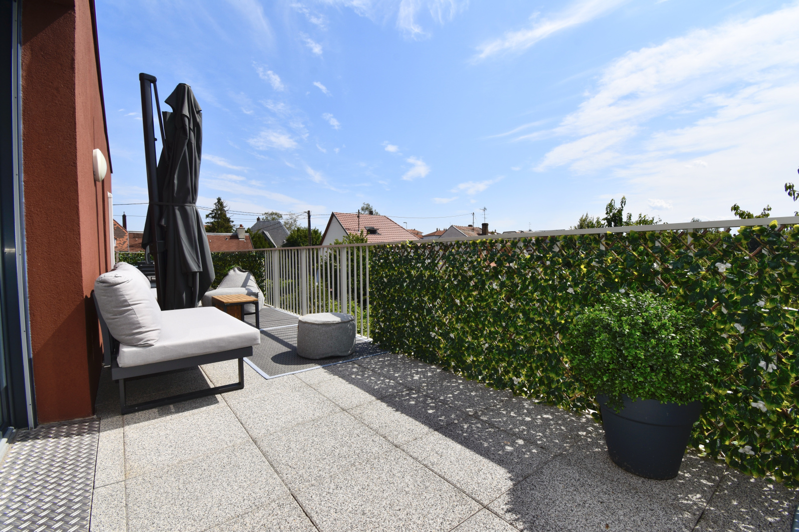 Atout majeur de ce bien : une magnifique terrasse de 27 m², accessible depuis l’ensemble des pièces principales, offrant un véritable espace de vie extérieur.